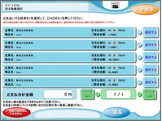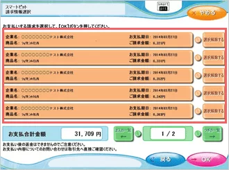 • 支払いする請求を選択して「OK」ボタンを押してください。